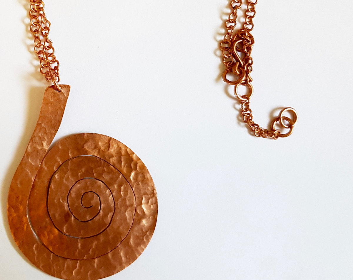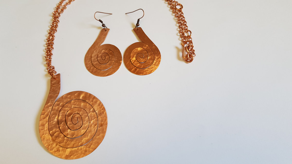 The copper is recycled from old geysers (water heaters), and each piece is lovingly hand-crafted by Elina and Memory from FREE, a woman's jewellery-making collective in a poor compound in Lusaka, Zambia, as part of this special collaboration.